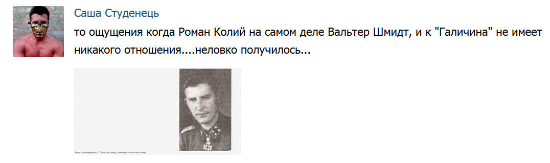 Пользователи сети обратили внимание, что цитата написана с большим количеством ошибок. Кроме того, на фото у Киселева в билете стоит фотография не украинца, а Вальтера Шмидта - оберштурмбанфюрера СС.