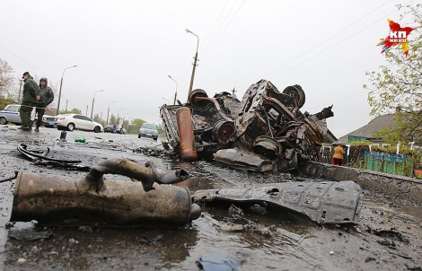 За інформацією сепаратистських ЗМІ, людські останки розкидані в радіусі близько 50 метрів, навіть на дахах довколишніх будинків спостерігаються фрагменти тіл.