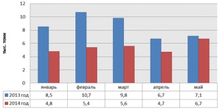Ситуация с грузоперевозками в отчетном периоде еще хуже – падение почти в 2,1 раза, до 20,4 тыс. т. Наибольшие потери были зафиксированы по итогам I квартала (15,6 тыс. т против 29 тыс. т годом ранее), и лишь в мае разница оказалась не слишком значительной – “минус” 5,6%.