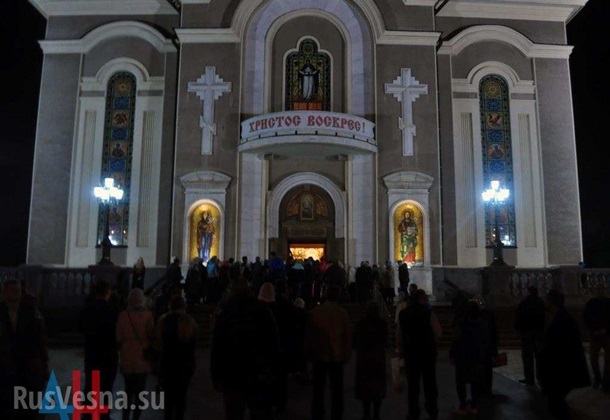В Луганске и Донецке на Пасху провели праздничные богослужения, а также первомайские демонстрации в лучших традициях советского времени.