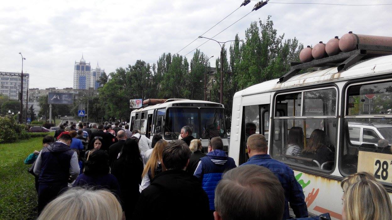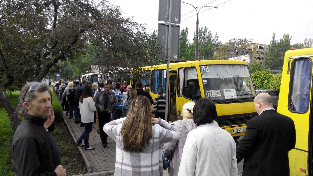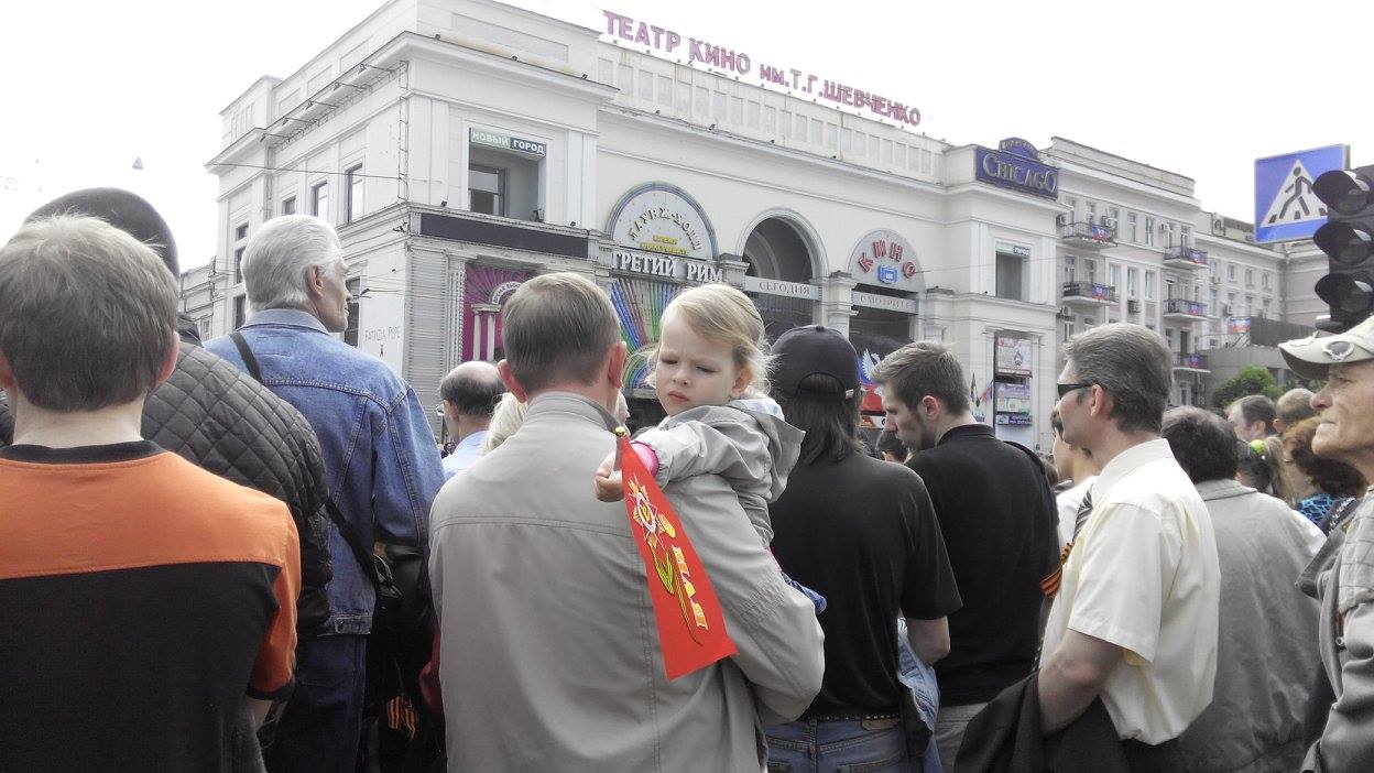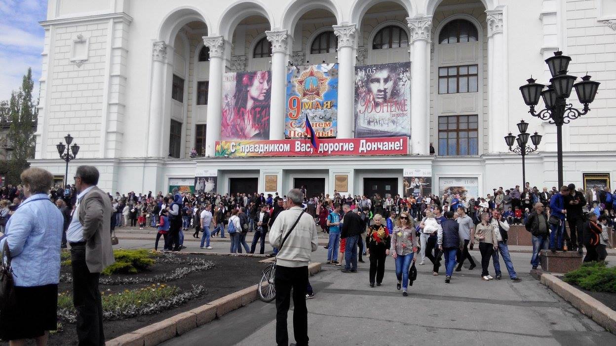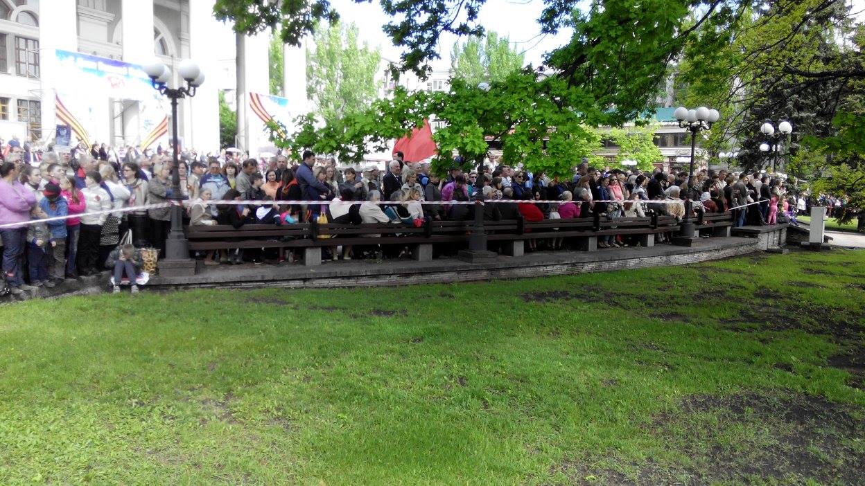 Отмечается, что в Донецк приезжают жители из окрестных городов. Люди держат в руках символику группировки «ДНР», сепаратистских движений «Молодая республика» и «Донецкая республика», а также символику Советского союза.