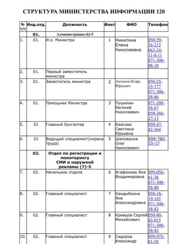 Сегодня я опубликую структуру Министерства пропаганды ДНР и список его сотрудников для того, чтобы наше общество и лица, участвующие в принятии решений, сравнили и поняли, - насколько мало сил и средств тратится украинским государством на противодействие пропаганде Российской Федерации и ее марионеток.