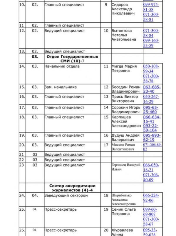 3. Контроль за аккредитацией журналистов иностранных и, в первую очередь, российских СМИ на территории Украины и выдворение таких журналистов в случае установления фактов нарушения ими законодательства Украины.