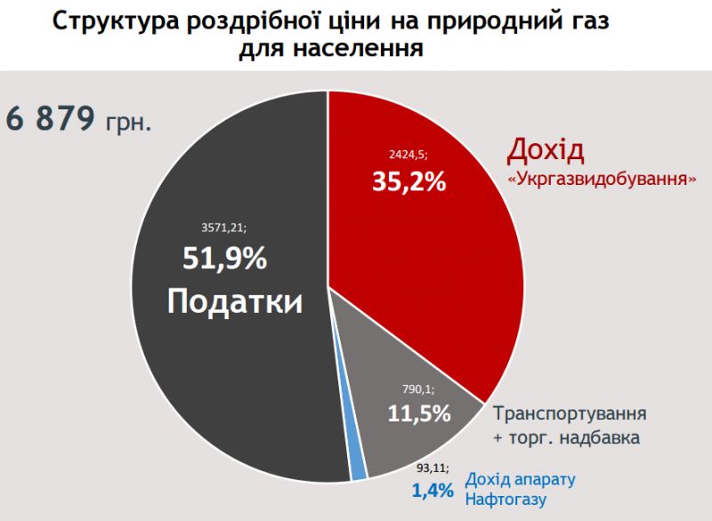 Юлія Тимошенко також звернула увагу: «Якщо подивитися на нову ціну на газ, то тепер на кожну тисячу кубометрів буде більше, ніж 3,5 тис податків - це побори з вас!»