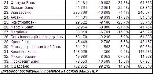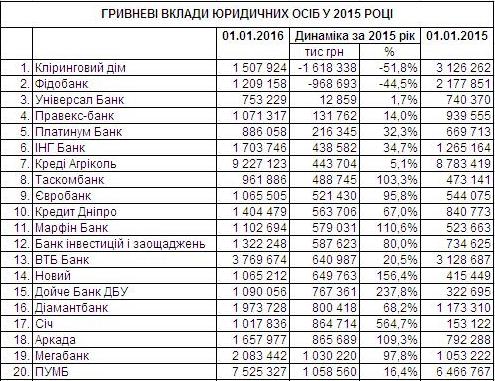 Finbalance проаналізував динаміку показників банків, у яких за підсумками 2015 року обсяг депозитів фізичних і юридичних осіб перевищував 1 млрд грн. У першому випадку таких виявилося 34, у другому – 37.
