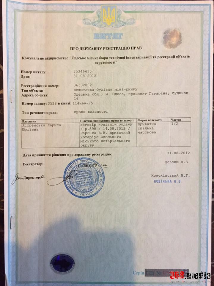 Согласно документам, право собственности на объект, который уже снесен, зарегистрировано в 2012 году на Ларису Ястремскую.