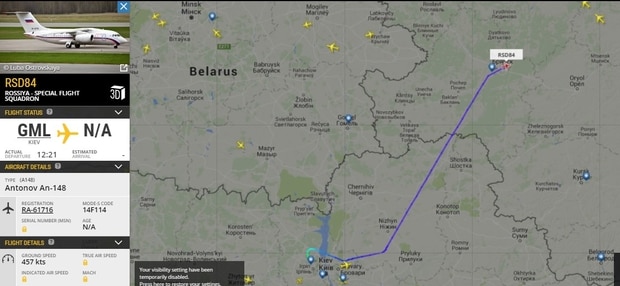 По состоянию на 13:00 правительственный Ан-148 пересек границу России и находился над Брянском.