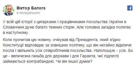 Во-вторых, на защиту Гаваши в такой однозначной ситуации не встал даже его ключевой соратник. Виктор Балога в понедельник вечером написал, что считает нужным уволить все посольство, включая руководителя.