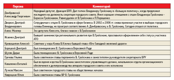 Есть люди в окружении Владимира Гройсмана, которых имеет смысл вывести в отдельную категорию. Это люди уже сыгравшие определенную роль в политической судьбе Владимира Гройсмана, и те кто «выныривал» в его окружении на том или ином временном интервале. Многие из них могут появиться рядом опять. Своего рода кадровый резерв.