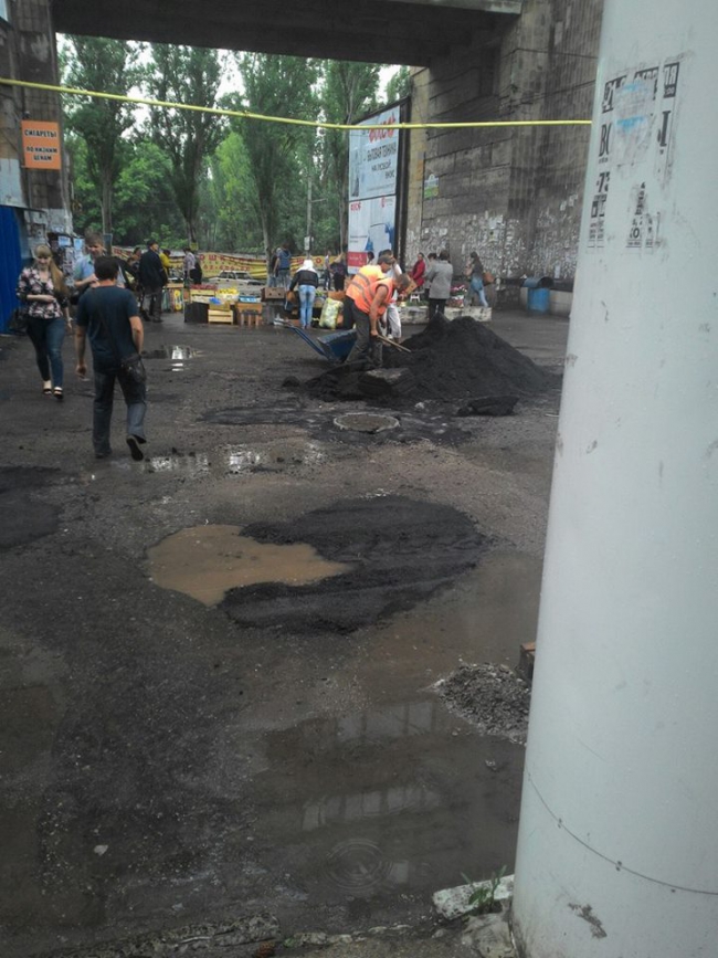 "Укладка асфальта в центре Макеевки. Посмотрите, как мило", - написал Казанский.