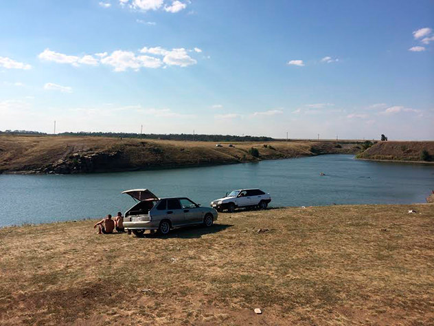 Митякинская – маленький поселок в нескольких километрах от границы, наполненный беженцами. О ночном обстреле жители либо не знают вовсе, либо узнали из новостей. Говорят, что снаряды упали на берегу местного озера. Едем туда. Мальчишки удят рыбу, они тоже ничего не слышали о залпах «Града». Обходим озеро пешком. Не видим ни воронок, ни следственной группы. Наверное, просто не там ищем. Однако натыкаемся на нечто любопытное: следы гусеничной техники, сломанные ветки деревьев, окопы, упаковка из-под армейского сухого пайка. Возникает ощущение, что здесь, примерно в километре от границы, стояла военная техника. Зачем? «Все оцеплено было, нас не пускали», – говорят встретившиеся нам подростки.