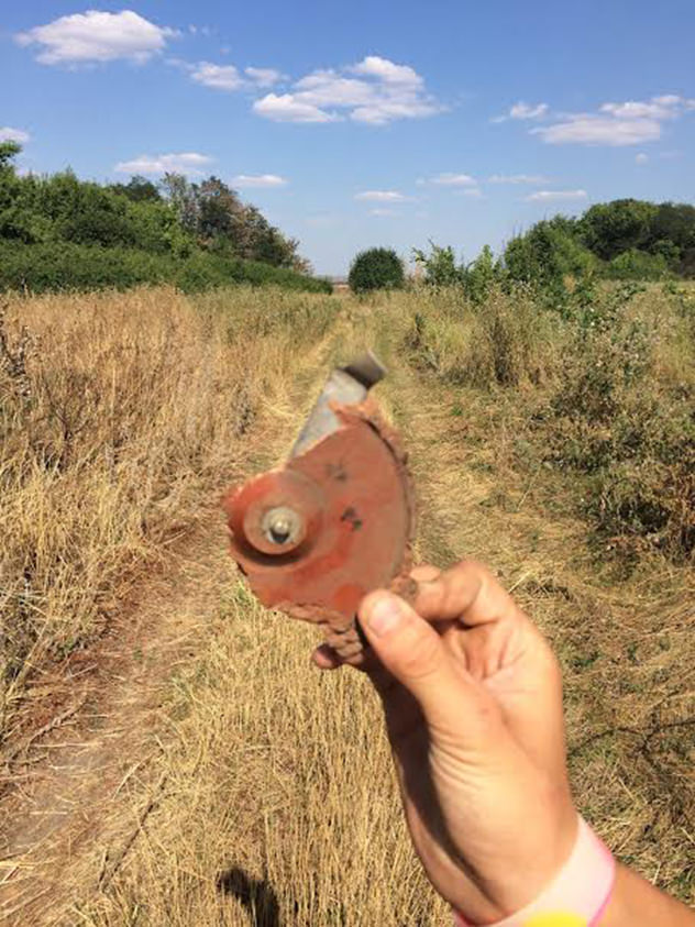 Обнаружить озеро, откуда снимали оба видео, несложно – здесь это популярное место отдыха. А мы хотим посмотреть, где стояли сами РСЗО. Местные мальчишки давно нашли это место. Там обожженная трава и валяются металлические фрагменты. Один из наиболее хорошо сохранившихся Slon покажет военным экспертам, чтобы понять, имеет ли он отношение к «Граду». Неподалеку действительно располагался солдатский лагерь. Судя по забытым личным вещам, уезжали оттуда в спешке.