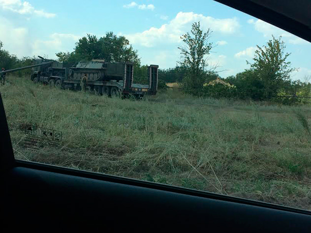Возвращаемся на трассу. По пути встречаем разную боевую технику. Что-то стоит возле дороги, что-то едет, что-то перевозят на платформах.