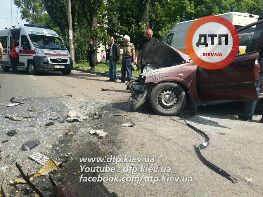 Масштабное ДТП в Киеве: из-за столкновения с Богданом загорелся Opel