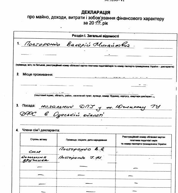 Начальник налоговой инспекции города Южный Одесской области Валерий Посторонко, попавшийся на взятке в две тысячи гривен в ноябре 2015 года, снова на работе. Об этом свидетельствуют определения Приморского райсуда и официальный сайт областного управления ГФС.