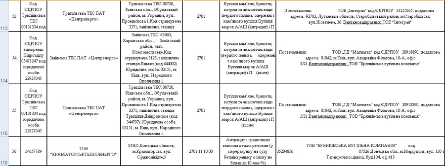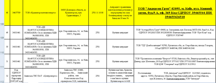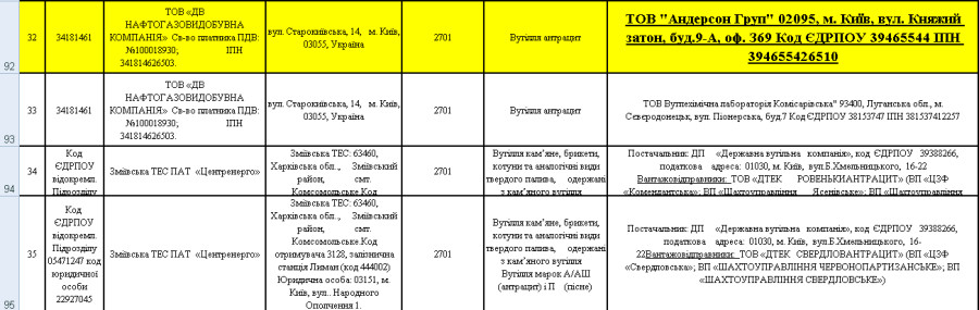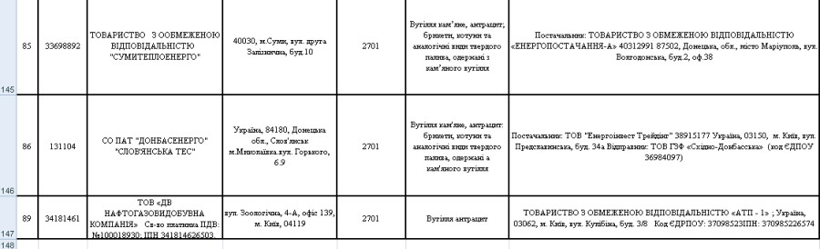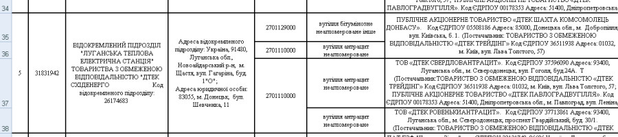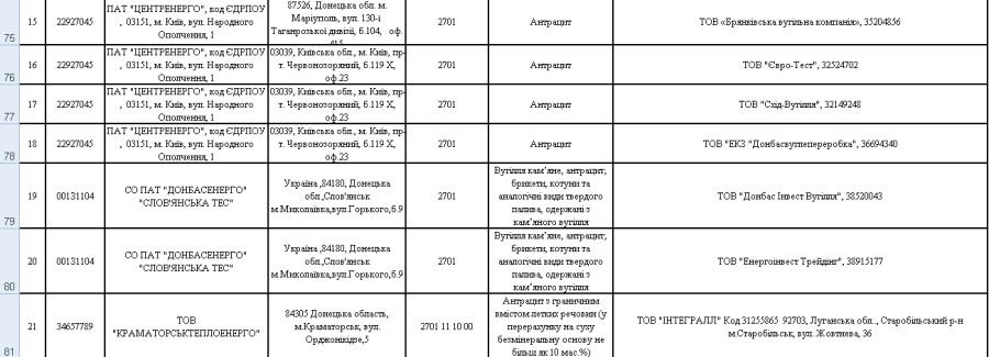Ознакомиться с полным перечнем предприятий, которые имеют право возить уголь с территории, контролируемой «Л-ДНР» вы можете, просмотрев фото-таблицу. «Андерсон групп», связанная с лидером террористов Денисом Пушилиным – не единственная интересная позиция в этом секретном списке привилегированных. Есть в нем и такой партнер «Центрэнерго», как «Интегралл». Зарегистрированная в г. Старобельске Луганской области по адресу ул.Жовтнева 36, эта фирма имеет в собственниках жителей оккупированного Антрацита, фамилии которых мелькали в одном скандале с заместителями председателя СБУ Виталием Маликовым и Олегом Фроловым. Как сообщали «Наші гроші», вся эта компания оказалась владельцами захваченной земли в заповедном Чернечьем лесу под Киевом. А кто скрывается за зиц-председателями из Антрацита – угадывайте сами. Внимательное изучение списка, который нам достался от неравнодушных угольщиков, позволит обнаружить и другие фирмы-прокладки, которые задействованы в схемах по поставкам из «Л-ДНР».