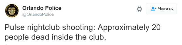 — Orlando Police (@OrlandoPolice) 12 июня 2016 г.