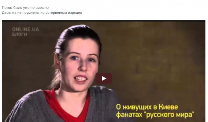 О том, как просьба о помощи блогеру Ольге Значковой, которая, разоблачала киевских сепаратистов, стала поводом для потоков ненависти, и как любители "русского мира" и РФ Владимира Путина реагируют на разоблачения — в видеоблоге Горького Лука на ONLINE.UA