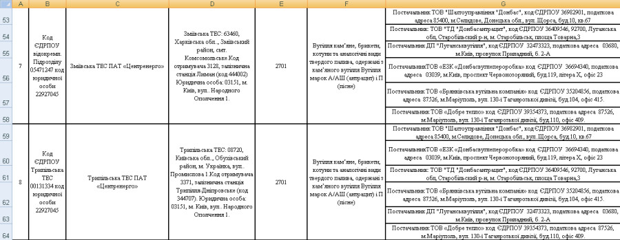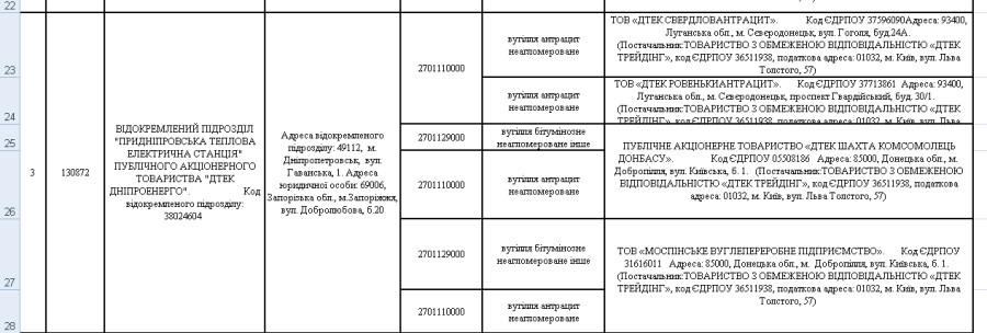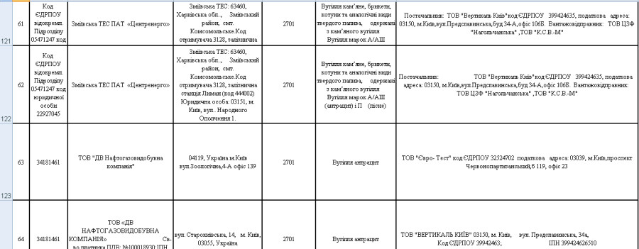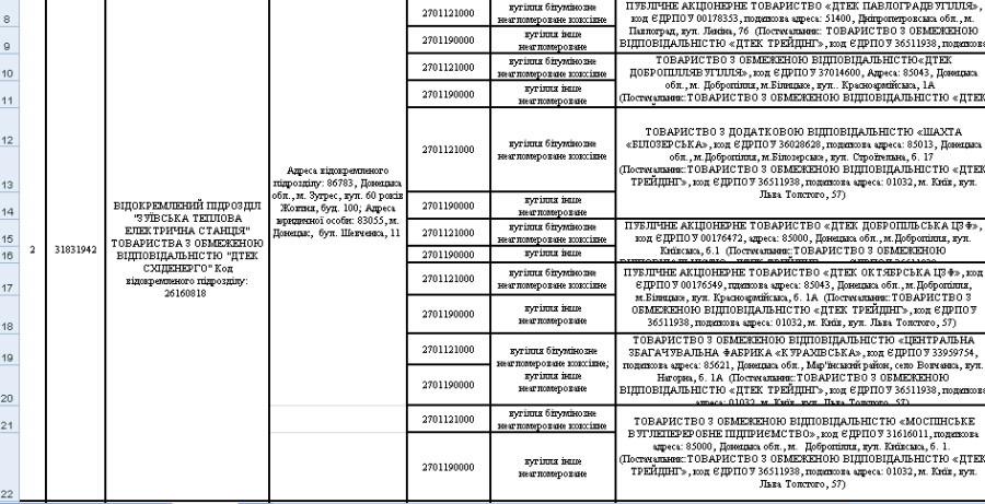 Об ООО «Торговый дом «Энергосбыт» известно, что она была зарегистрирована в апреле 2015-го под названием «Мавер-Аудит», и по одному адресу с ней находится еще одна сомнительная компания, которая называется ООО «Дантрейд ЛТД». Эта фирма имеет такой же уставной капитал – 1000 грн., и тоже получила от «Центрэнерго» договор на поставку угля из АТО на сумму 104 миллиона гривен. Фирма, созданная в конце 2014 года, после заключения договора с «Центрэнерго» была записана на киевлянина Николая Власенко, но основательницей была Оксана Михайловна Горностаева из Красного Луча. Вот этот адрес: г. Киев, улица Олевская 3-Б, офис 1 и офис 1-а. Только там нет никаких офисов – это одноподъездная секция панельного дома на самой окраине Киева, которую арендовала переселенка из Красного Луча. Причем, первый директор«Дантрейд ЛТД» Оксана Горностаева еще в сентябре 2014 года искала работу бухгалтером за 6000 грн. в месяц, а уже через год в качестве Фунта стала ворочать сотнями миллионов…