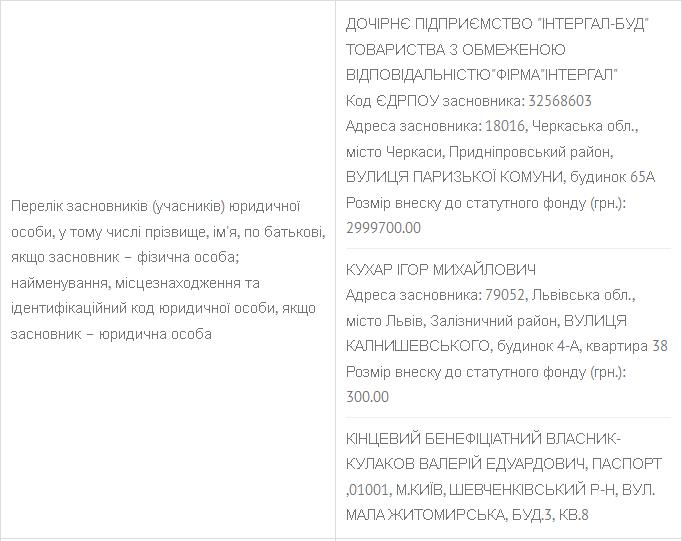 Прим. KV. Неоднократно сообщалось, что ООО “Интергал-Буд” принадлежит депутату V-VIII созывов Верховной Рады Владимиру Зубику. Последние два созыва – он самовыдвиженец. А до того успел побыть депутатом и от Партии регионов, и от “Батькивщины”. Сейчас он состоит во фракции “Возрождение”, ранее принадлежавшей покойному Игорю Еремееву. Сейчас фракция расколота и часть ее депутатов ориентируются на Игоря Коломойского.