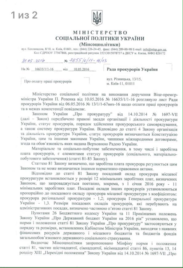 Однако, там также ссылаются на нормы «Бюджетного кодекса» и Закона «О бюджете на 2016 год», где, в частности, указывается, что положения Закона «О прокуратуре» в вопросе зарплат регулируются Кабмином «исходя из наличных финансовых возможностей».