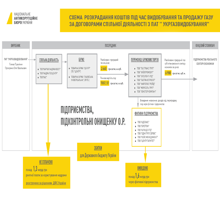 Итак, по мнению следователей, Онищенко, находясь на должности зампредседателя комитета ВР по вопросам топливно-энергетического комплекса, ядерной политики и ядерной безопасности, «имея полный контроль над деятельностью» предприятий ООО «Надра Геоцентр», ООО Фирма «Хас» и ООО «Карпатнедроинвест», являющимися операторами согласно договоров о совместной деятельности с ПАО «Укргаздобыча», якобы «принял решение о личном обогащении путем завладения денежными средствами» указанного выше публичного акционерного общества.
