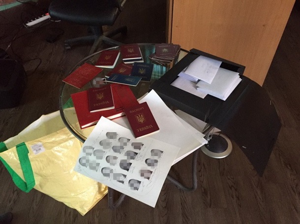 "Во время обыска в доме одного из злоумышленников правоохранители изъяли оборудование и оргтехнику, которое использовалось для изготовления фальшивых документов, а также 50 готовых паспортов с признаками и элементами подделки", - говорится в сообщении пресс-центра СБ Украины, обнародованном в четверг.