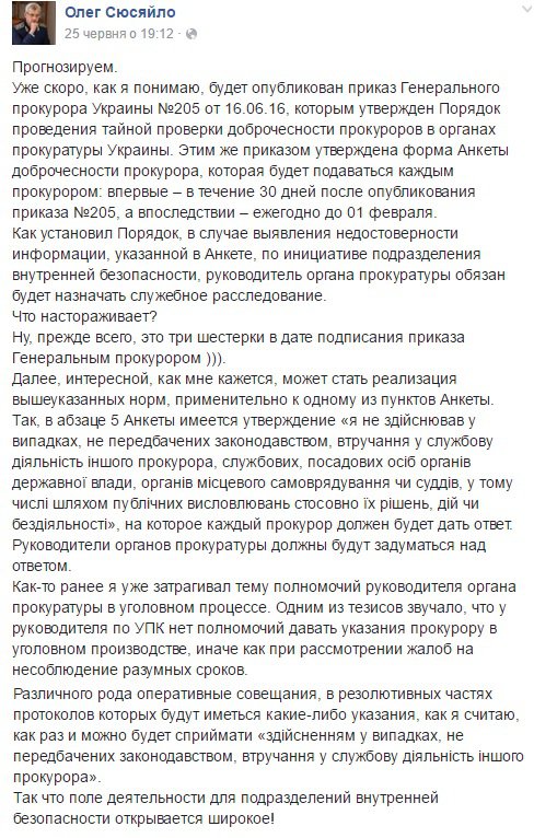 Важный момент подчеркнул в комментарии на своей страничке в сети facebook бывший прокурор Донецкой области Олег Сюсяйло.