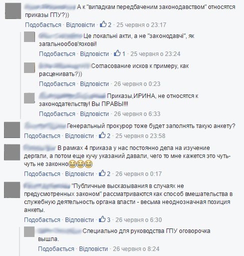 16 июня Генпрокурор Юрий Луценко анонсировал тайные проверки добропорядочности прокуроров. Он приготовил приказ, согласно которому каждый работник прокуратуры должен будет заполнить соответствующую декларацию. Луценко уточнил, что заполненные анкеты будут вывешены на сайтах прокуратур, а отказ заполнять их будет означать увольнение.