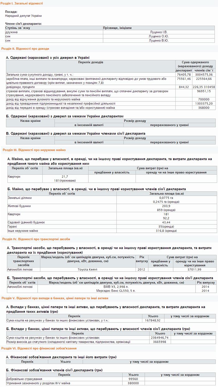 На сайте Верховной Рады еще с «парламентских времен» Луценко сохранилась в публичном доступе его декларация о доходах.