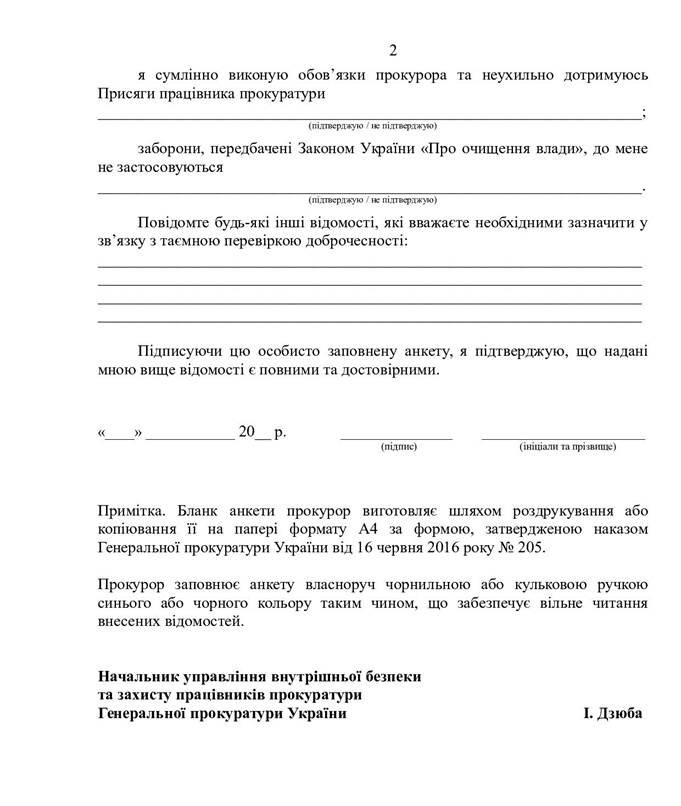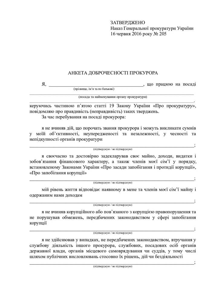 В Анкете прокурор должен будет написать «подтверждаю» или «не подтверждаю» по следующим пунктам: