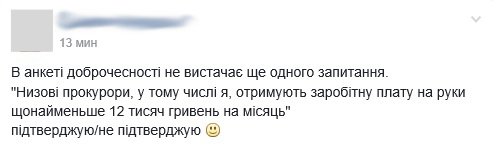 Впрочем, сами анкеты, обнародованные ГПУ, выглядят во многом двусмысленно, и, скорее, призваны не очистить прокуратуру, а создать механизм для того, чтобы «подвесить» всех прокуроров в состоянии неопределённости.