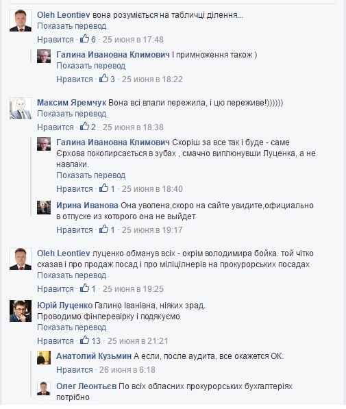 Об этом в комментарии к посту бывшего "следователя-важняка" надзорного ведомства Галины Климович в Fb написал генпрокурор Юрий Луценко. "Никаких "зрад", проводим финпроверку и поблагодарим", - отметил глава ГПУ.