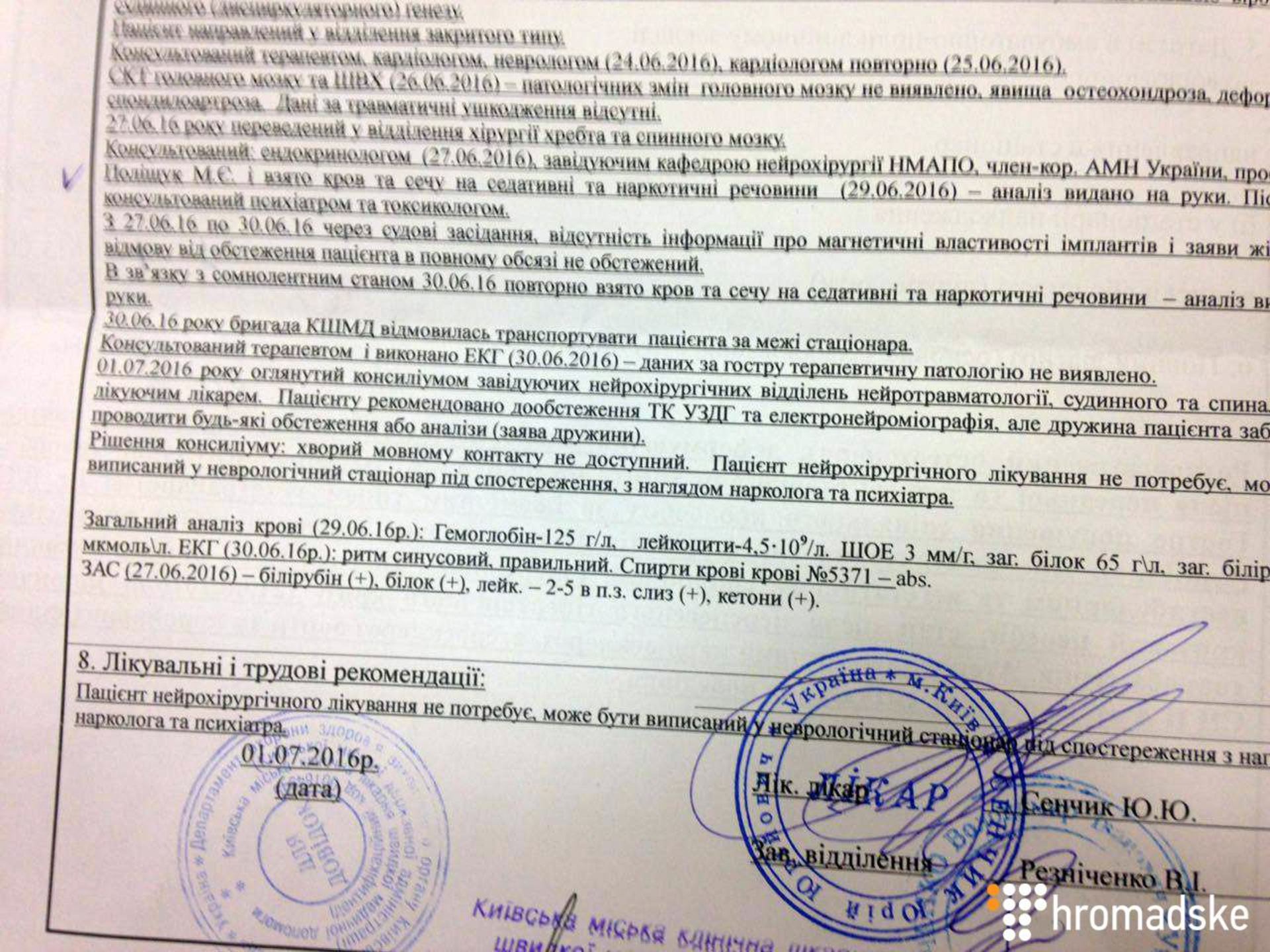 Водночас прокурор звернув увагу, що немає об’єктивних даних, чому підозрюваний у непритомному стані. Крім того, за словами прокурора, є висновок, що в крові Постного знайдена наркотична речовина — метамфетамін.