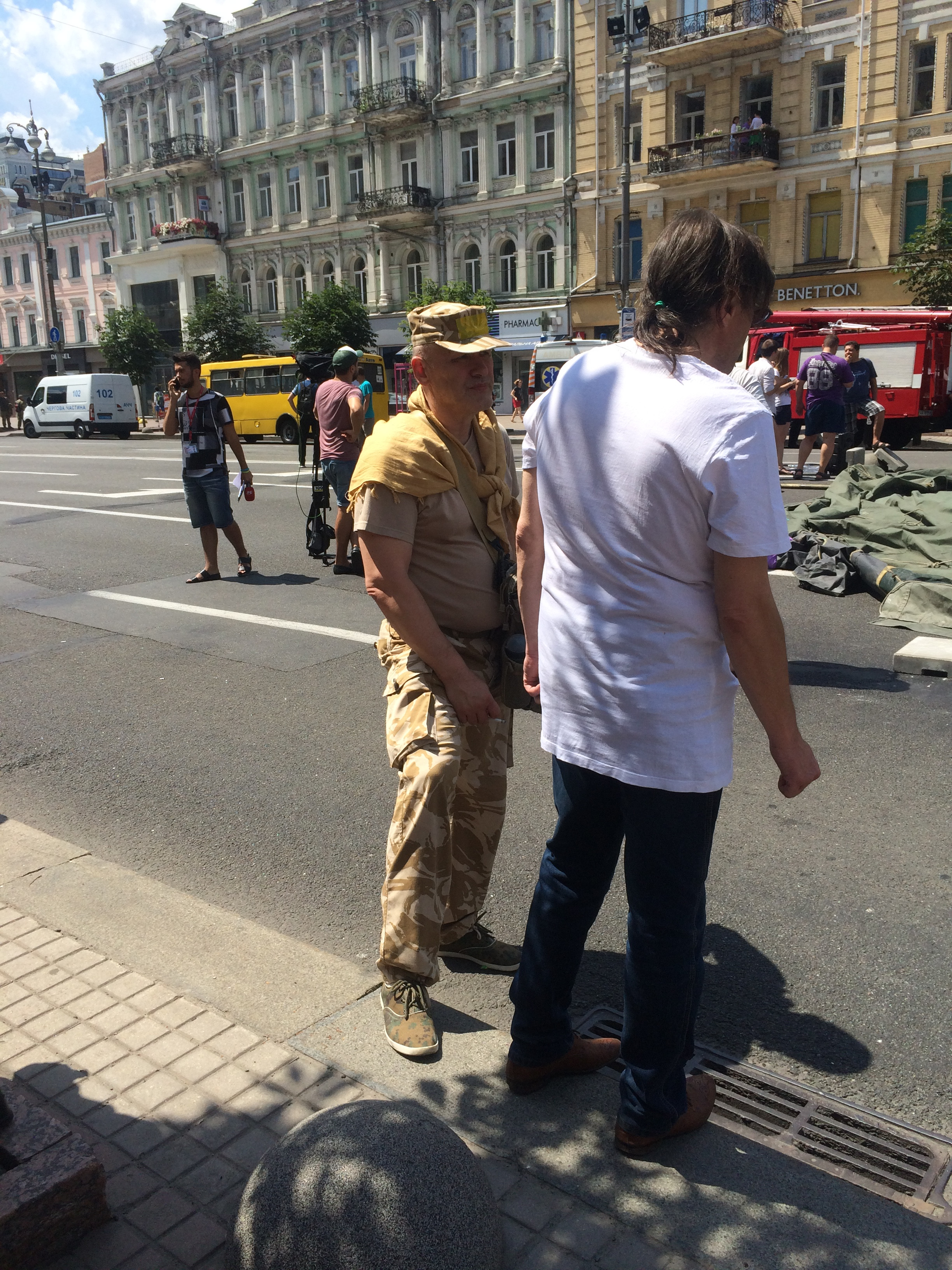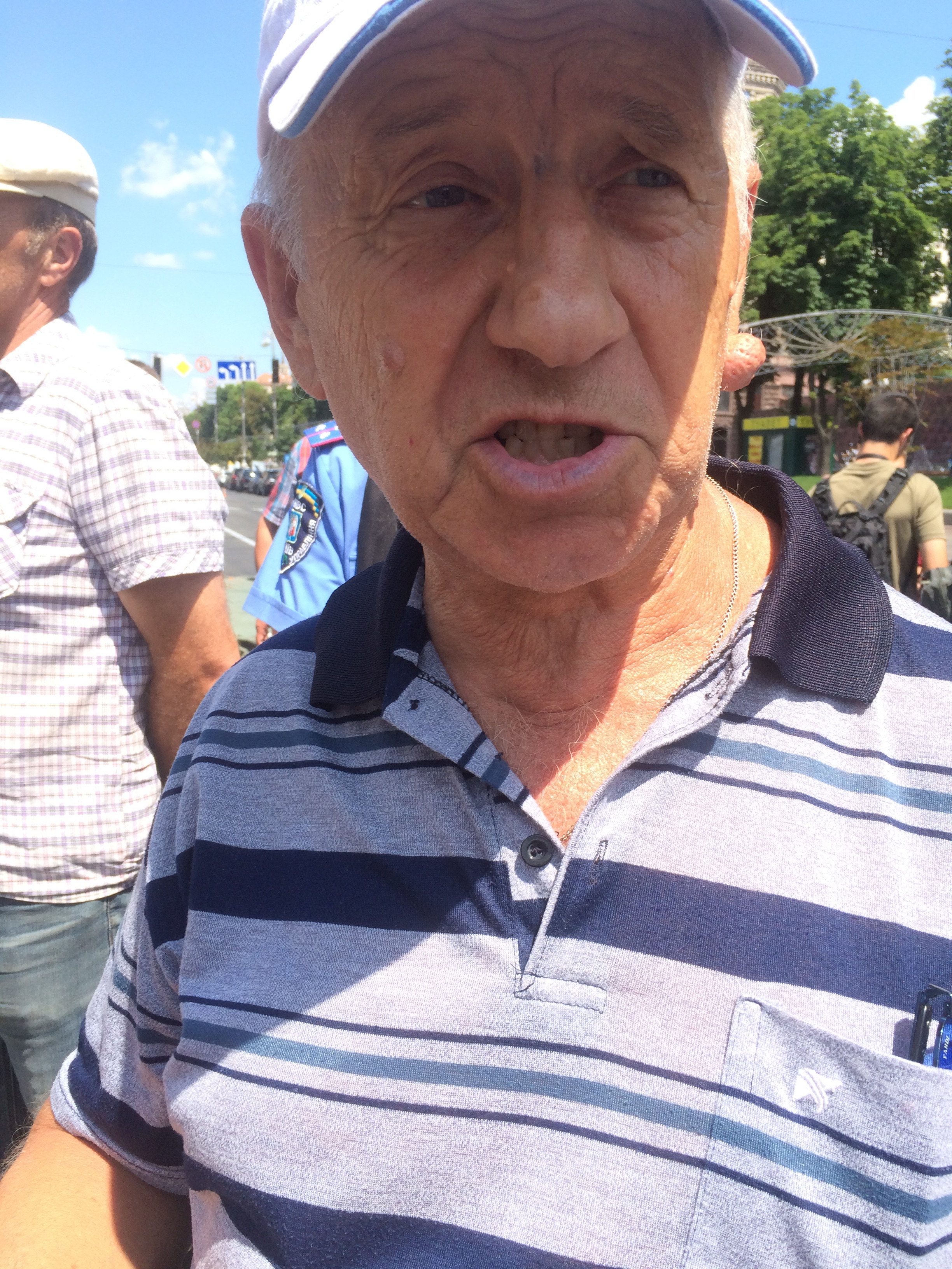— Суки они все! — поддерживает Одесса. — И Семенченко этот, — злобно глядит он через дорогу в сторону Семена Семенченко, который кричит что-то в микрофон. — А Парррубий Андррруша який був харроший, — перездразнивает он экс-коменданта Майдана, — а зррробився така курва, шо мама мия.