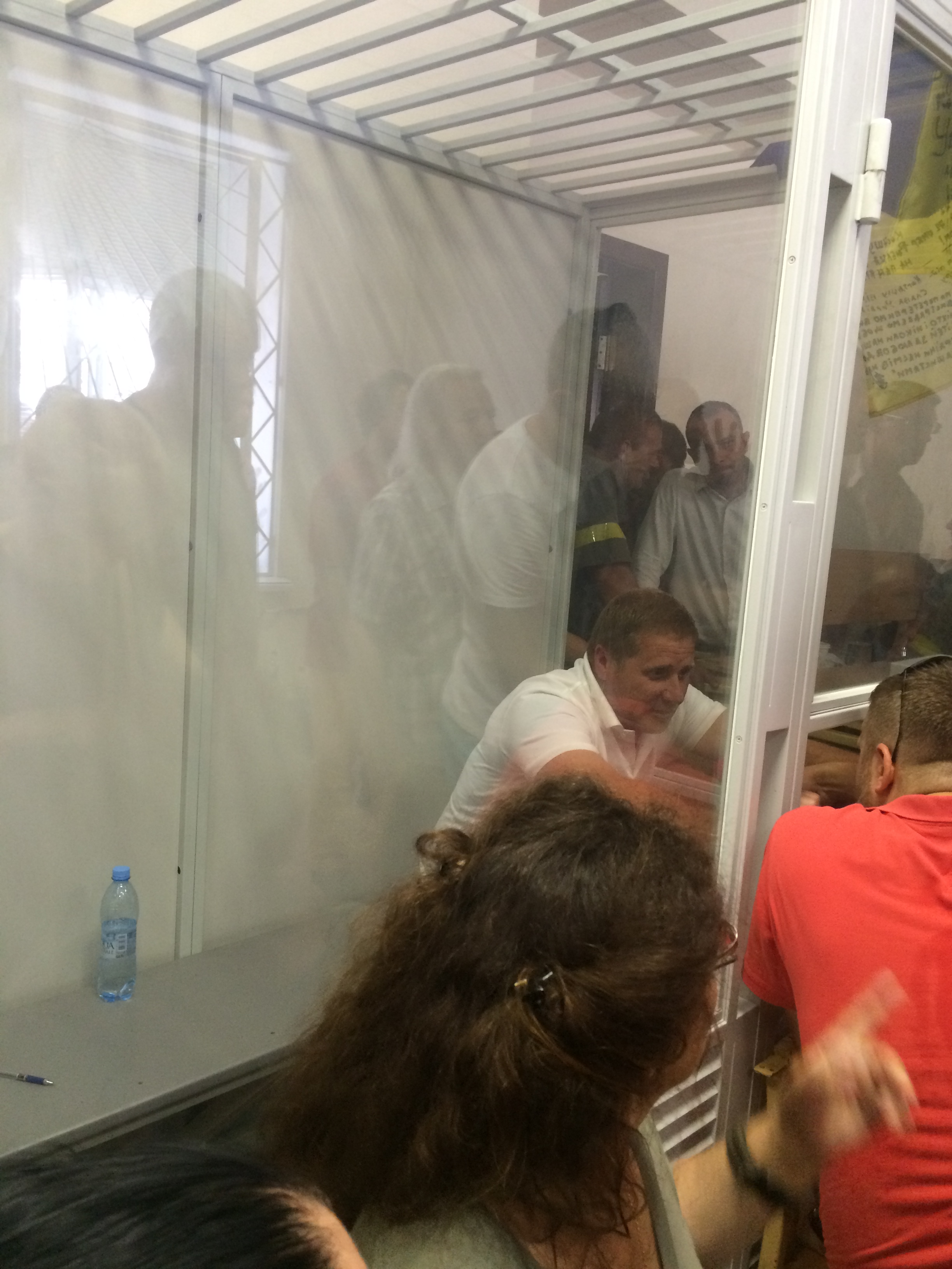 Печерский суд вынес Бате меру пресечения — содержание под стражей. Но реализовать это решение не могут - суд заблокирован пусть и немногочисленным, но решительным отрядом добровольцев. При поддержки ряда народных депутатов - Мосийчука, Семена Семенченко, Егора Соболева и прочих.