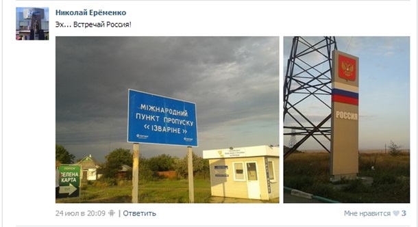 «Эх, встречай Россия», написал Николай 24 июля и прикрепил снимки местности ПП Изварино. Значит мальчик беженец, который сейчас в России?