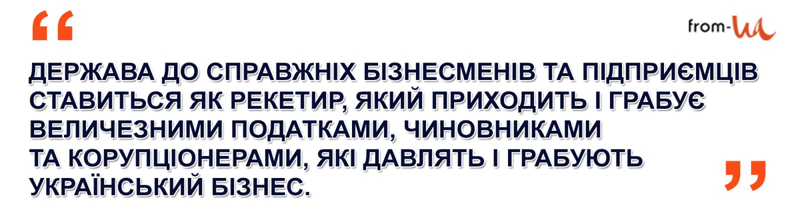 Президент Порошенко нічого не зробив для того, щоб у нас зараз була нормальна реформа податкової системи, яка з фіскальної повинна перетворитися на сервісну. Тут, на жаль, держава до справжніх бізнесменів та підприємців ставиться як рекетир, який приходить і грабує величезними податками, чиновниками та корупціонерами, які давлять і грабують український бізнес. Тут немає нормального бізнес-клімату, і це ще одне питання до Петра Порошенка, який каже, що «я ніколи не був олігархом, я завжди був в опозиції, і влада завжди боролася проти мого бізнесу».