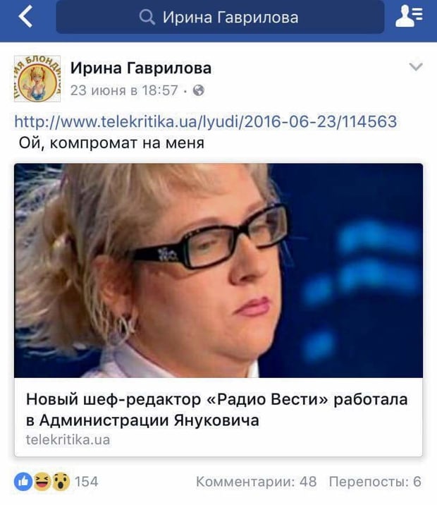 Генерального директора "Радио Вести" Ирину Гаврилову уличили в антиукраинской позиции.