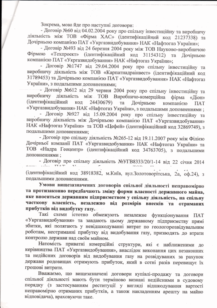 Они также предлагали проверить деятельность должностных лиц компании «Укргаздобыча» по заключению договоров совместной инвестиционной и производственной деятельности.