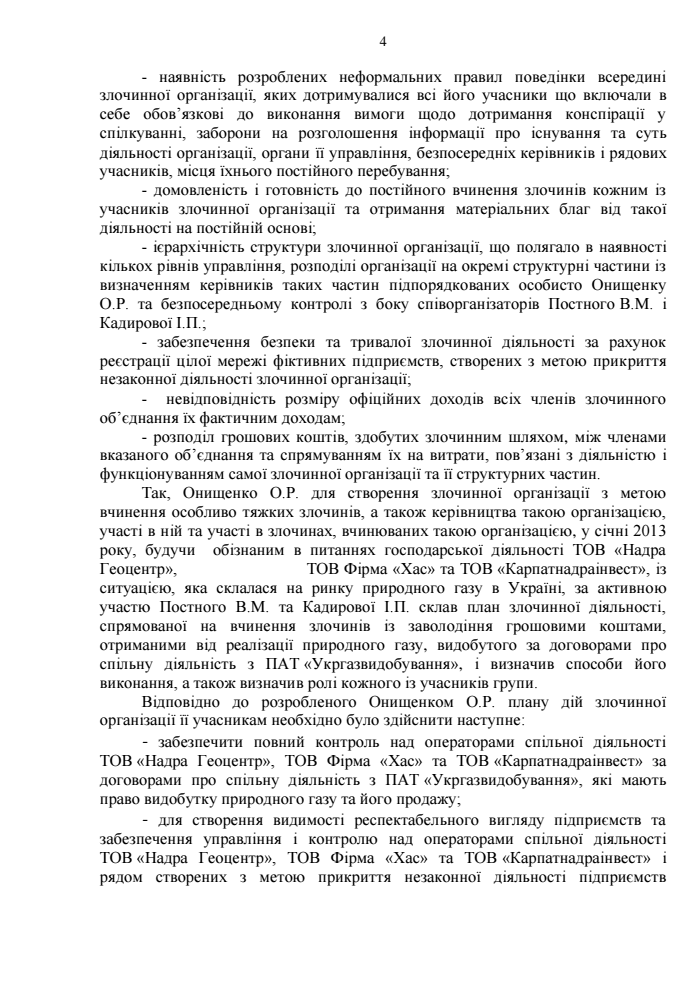 После прихода к власти Януковича ООО «Надра Геоцентр», которое в то время возглавлял Онищенко, начало массово подписывать дополнительные соглашения и получать скважины. Таким образом, за три года Онищенко как директор предприятия подписал 4 договора, которые значительно улучшали финансовые перспективы бенефициаров схемы.
