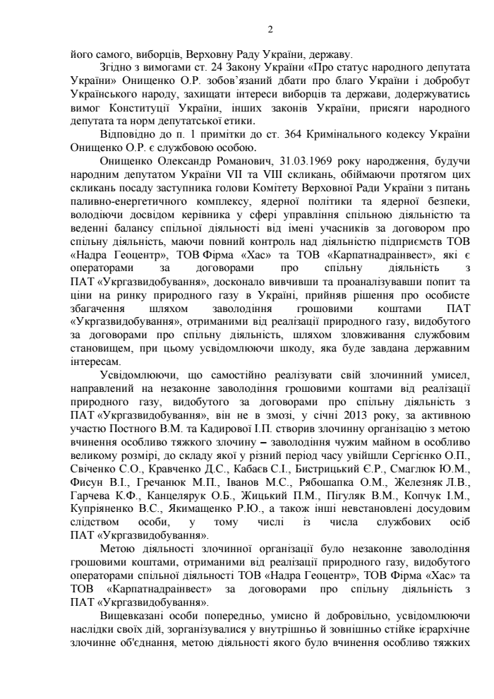 Прямая связь Онищенко и компании «Надра Геоцентр» подтверждается данными по представлению генпрокурора о снятии неприкосновенности с нардепа.