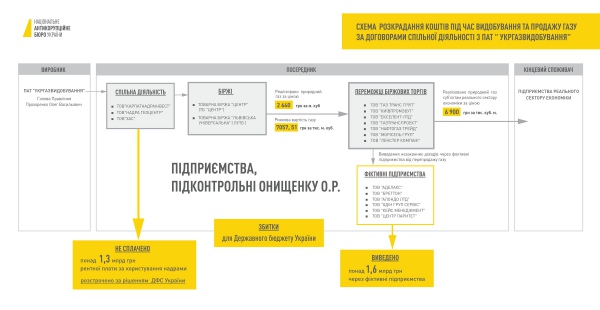 Первая схема касалась заключения «Укргаздобычей» договоров купли-продажи, которыми за бесценок и вопреки законодательству фактически продавалось право пользования газовыми скважинами, принадлежащих госпредприятию.