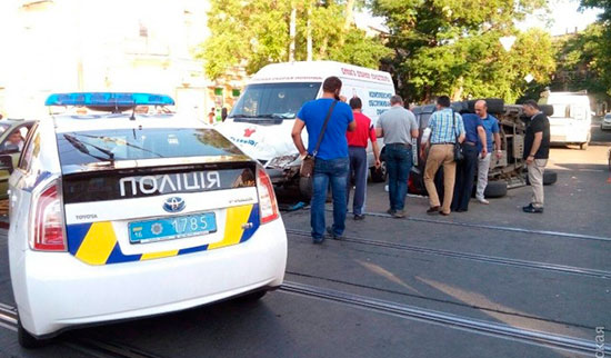 Вчера вечером, 11 июля 2016 года, патрульные полицейские г. Одессы устроили ДТП из трех машин. Как сообщает издание "Думская", полицейские ехали по встречке с мигалками и врезались во внедорожник «Митсубиси Паджеро». В результате столкновения, внедорожник задел «Мерседес Спринтер» и перевернулся. Водителю «Митсубиси» понадобилась госпитализация.