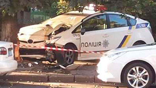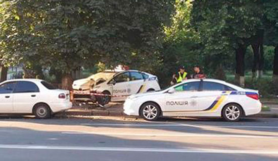 Сотрудница патрульной полиции г. Киева за рулем служебного автомобиля совершил ДТП - на большой скорости врезался в дерево. Авария произошла 13 июля 2016 года на Воздухофлотском проспекте. Девушка полицейская получила серьезную травму головы и была госпитализирована. Одна из версий аварии - патрульная заснула за рулем.