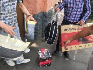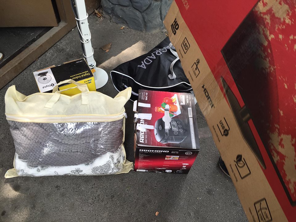 Активист показал пожитки Пискуна, с которыми он вышел на волю. Среди них был 32-дюймовый  телевизор BRAVIS, мультиварка и спутниковая антенна.
