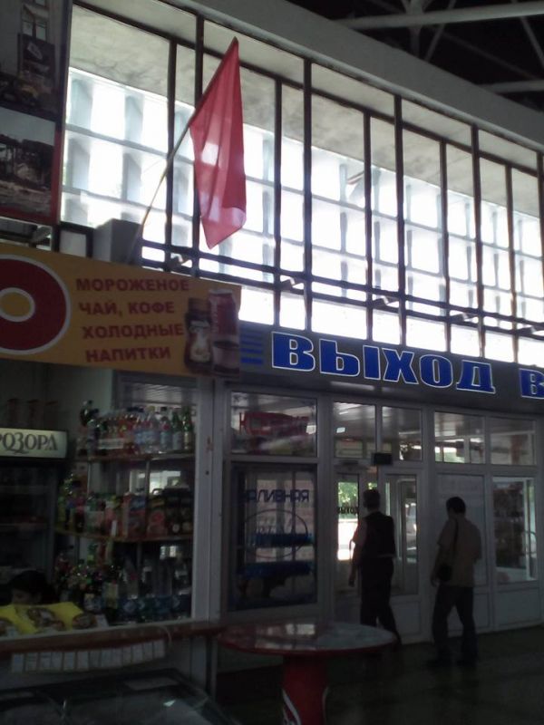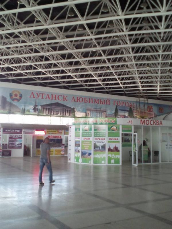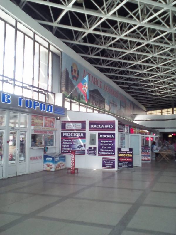 Моя знакомая в субботу выехала из Луганска в Украину. Большим автобусом до Харькова. Для любопытствующих - билет нынче стоит туды 1200 рублей. Отправка с обновленного автовокзала. (Он, словно остров невезенья весь покрыт символикой эленер. Фото под текстом)