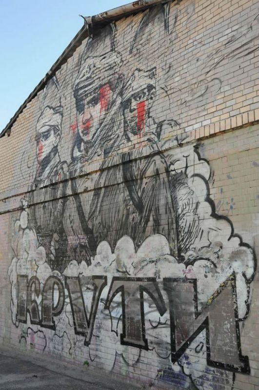 В кінці січня на стіні будівлі по вулиці Фейєрбаха в Харкові представники ГК "Азов" і донеччанин, який побажав залишитися невідомим, створили мурал на честь Героїв Крут. Висота зображення складає 7 метрів, ширина - 5 метрів.