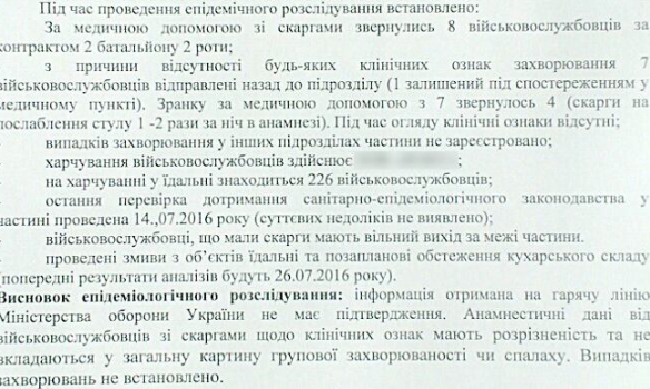 "8 бійців однієї військової частини звернулися до медпункту зі скаргами на отруєння. Реакція місцевого командування була блискавичною - з бійцями проведено "виховну" бесіду, вони себе почувають прек-рас-но", - написав Бірюков.