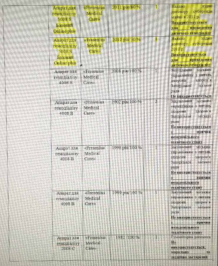 Оказывается, что аппараты «Фрезениус», которые стояли в Запорожской областной больнице уже давно стали не пригодными к эксплуатации. Одному из – 34 года (!).